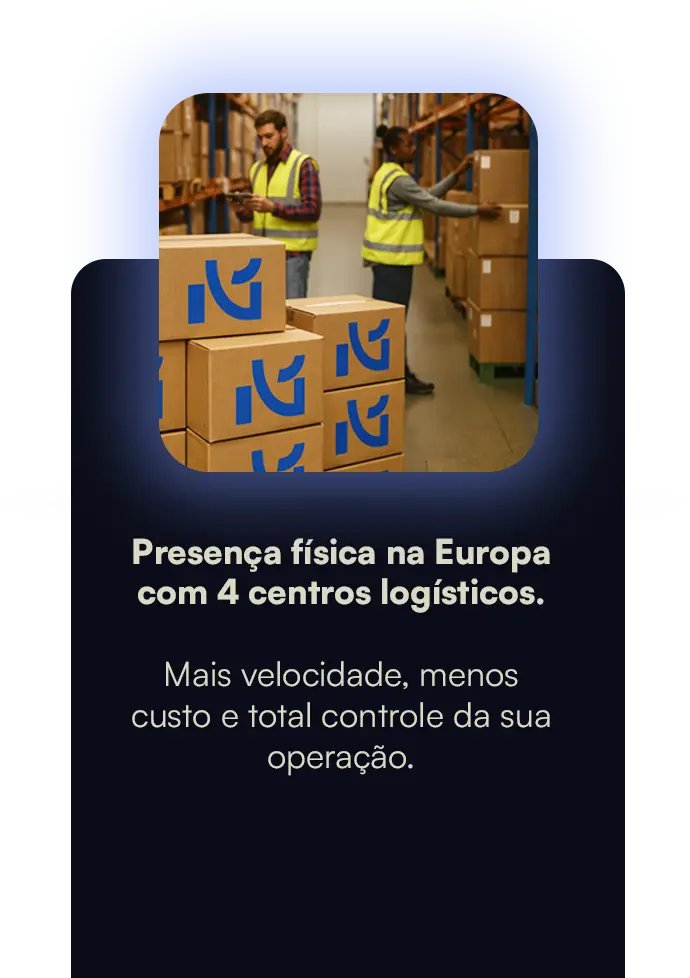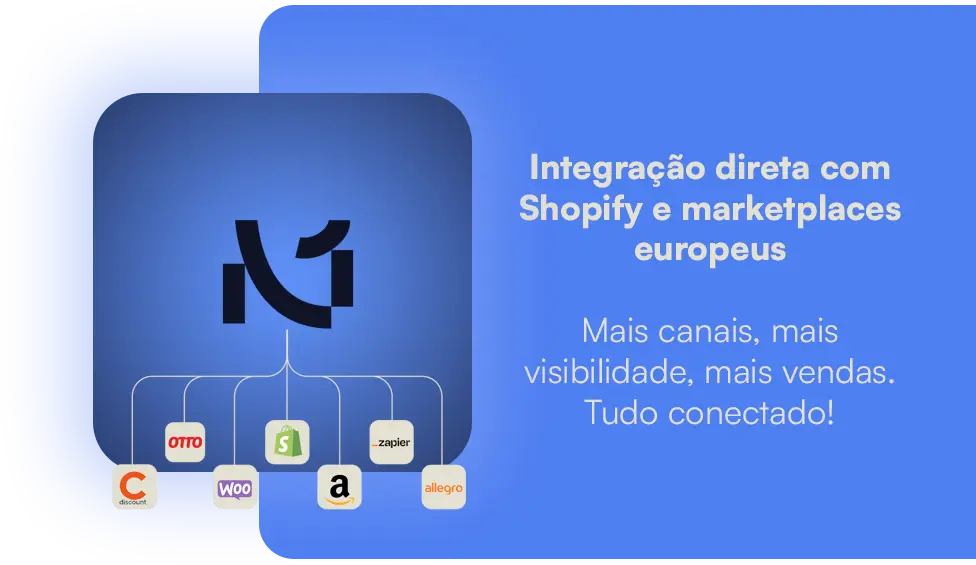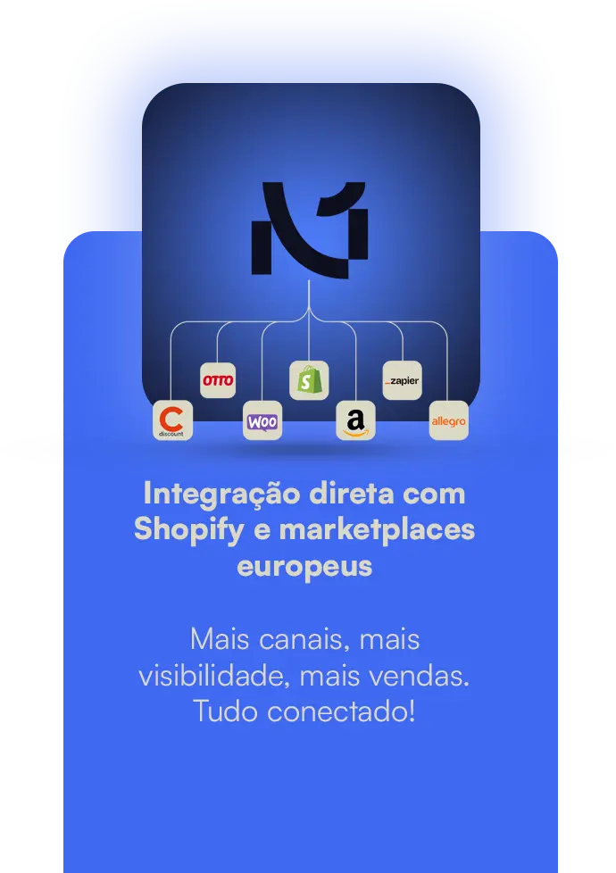 Você entra nos principais marketplaces e canais de venda da Europa com acompanhamento real do nosso time.